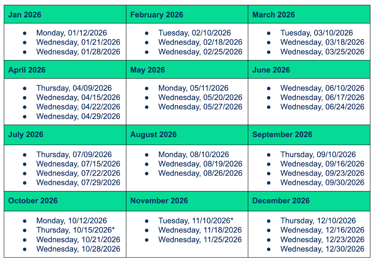 2026 Distribution Schedule